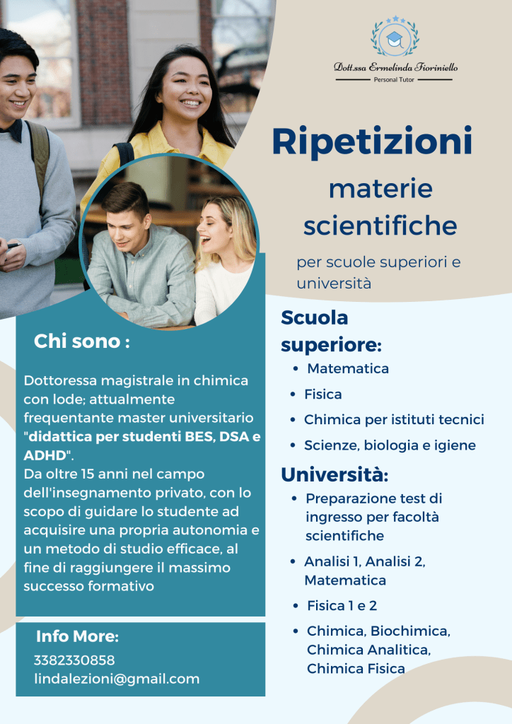 - Materie di indirizzo chimico (chimica generale, chimica organica, chimica analitica, biochimica, chimica fisica)